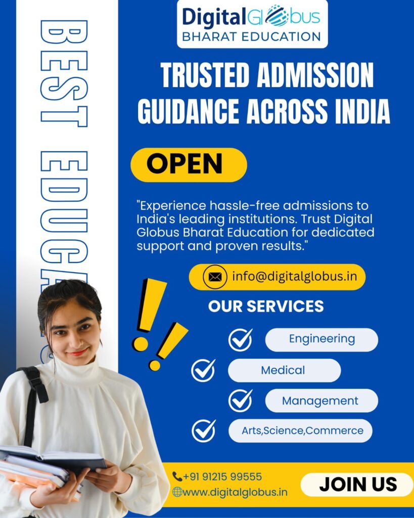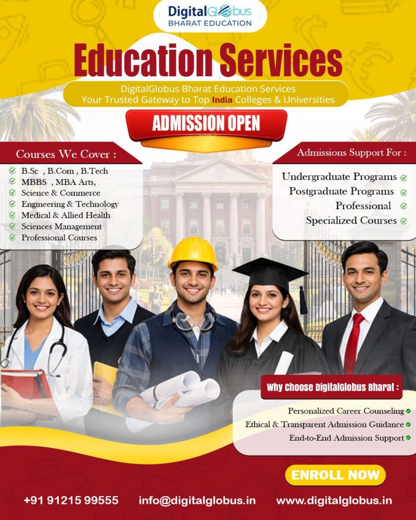 ప్రస్తుత పోటీ ప్రపంచంలో విద్య అనేది కేవలం డిగ్రీ పొందడం మాత్రమే కాదు… అది ఒక విద్యార్థి జీవితాన్ని పూర్తిగా మలిచే కీలక నిర్ణయం. సరైన కోర్సు, సరైన కాలేజీ ఎంపిక చేయలేక ఎంతో మంది విద్యార్థులు, తల్లిదండ్రులు అయోమయానికి గురవుతున్న పరిస్థితుల్లో… ఒక విశ్వసనీయ మార్గదర్శకుడిగా డిజిటల్ గ్లోబస్ భారత్ ఎడ్యుకేషన్ సర్వీసెస్ ముందుకు వచ్చింది. హైదరాబాద్ కేంద్రంగా పనిచేస్తూ, దేశవ్యాప్తంగా ఉన్న టాప్ కాలేజీలు, యూనివర్సిటీలతో విద్యార్థులను అనుసంధానిస్తూ, వారి కెరియర్కు సరైన దారి చూపడమే ఈ సంస్థ ప్రధాన లక్ష్యం.